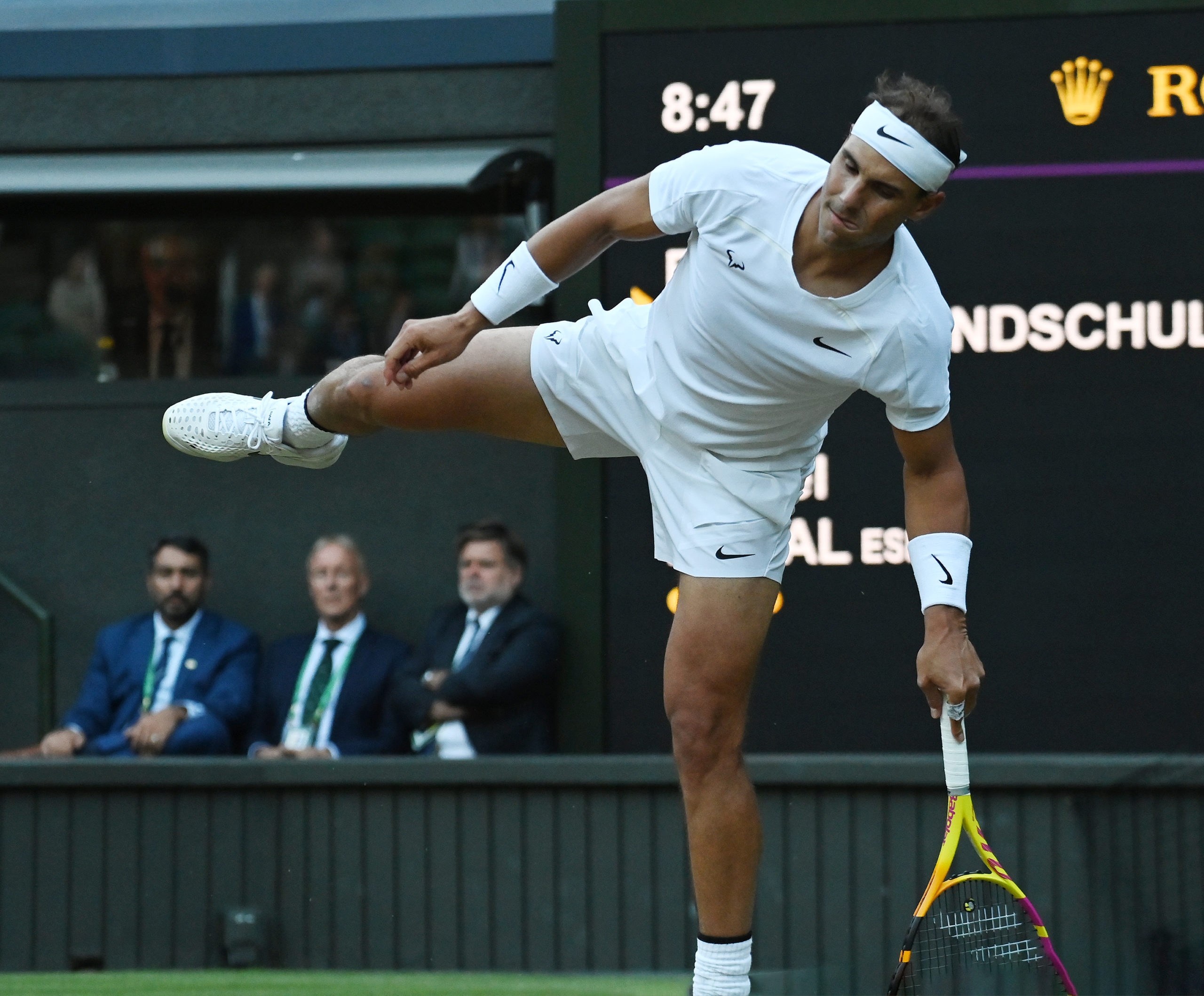 London Wimbledon Championships Day 04/07/2022 Off balance but on course Rafa Nadal (ESP) as he wins fourth round match on centre court Roger Parker International Sports Fotos Ltd