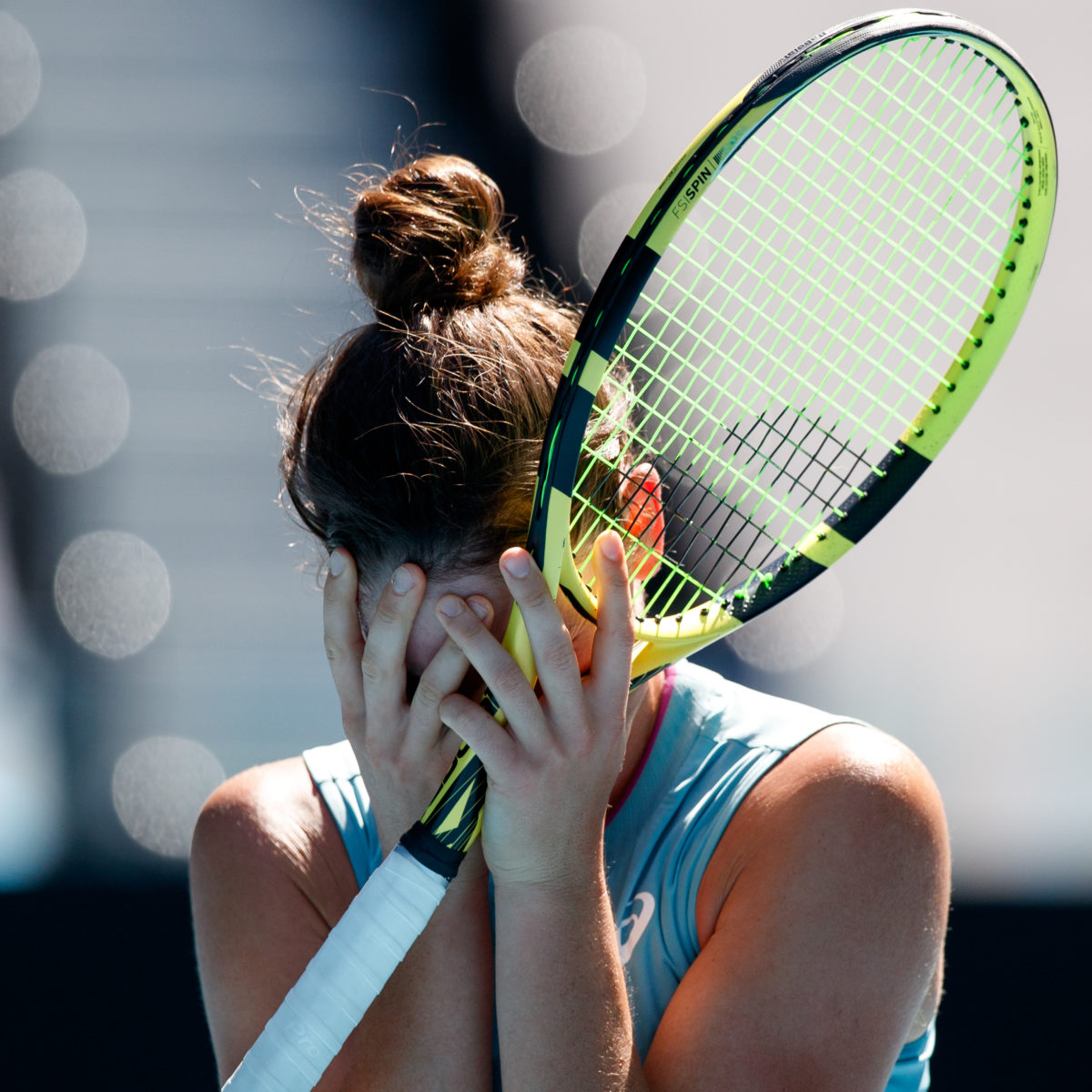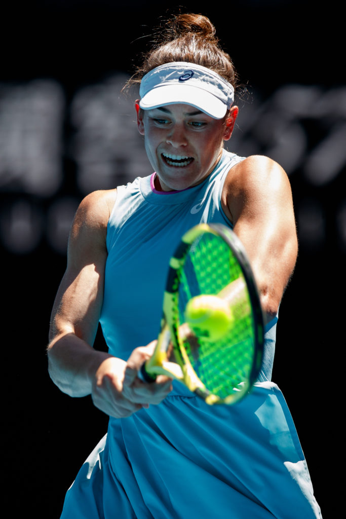 In hot conditions, Brady fought back, levelling the tie in the second with some powerful tennis. She jumped out to a 3-0 lead, briefly lost it and slammed her racket to the ground in frustration, before refocussing.