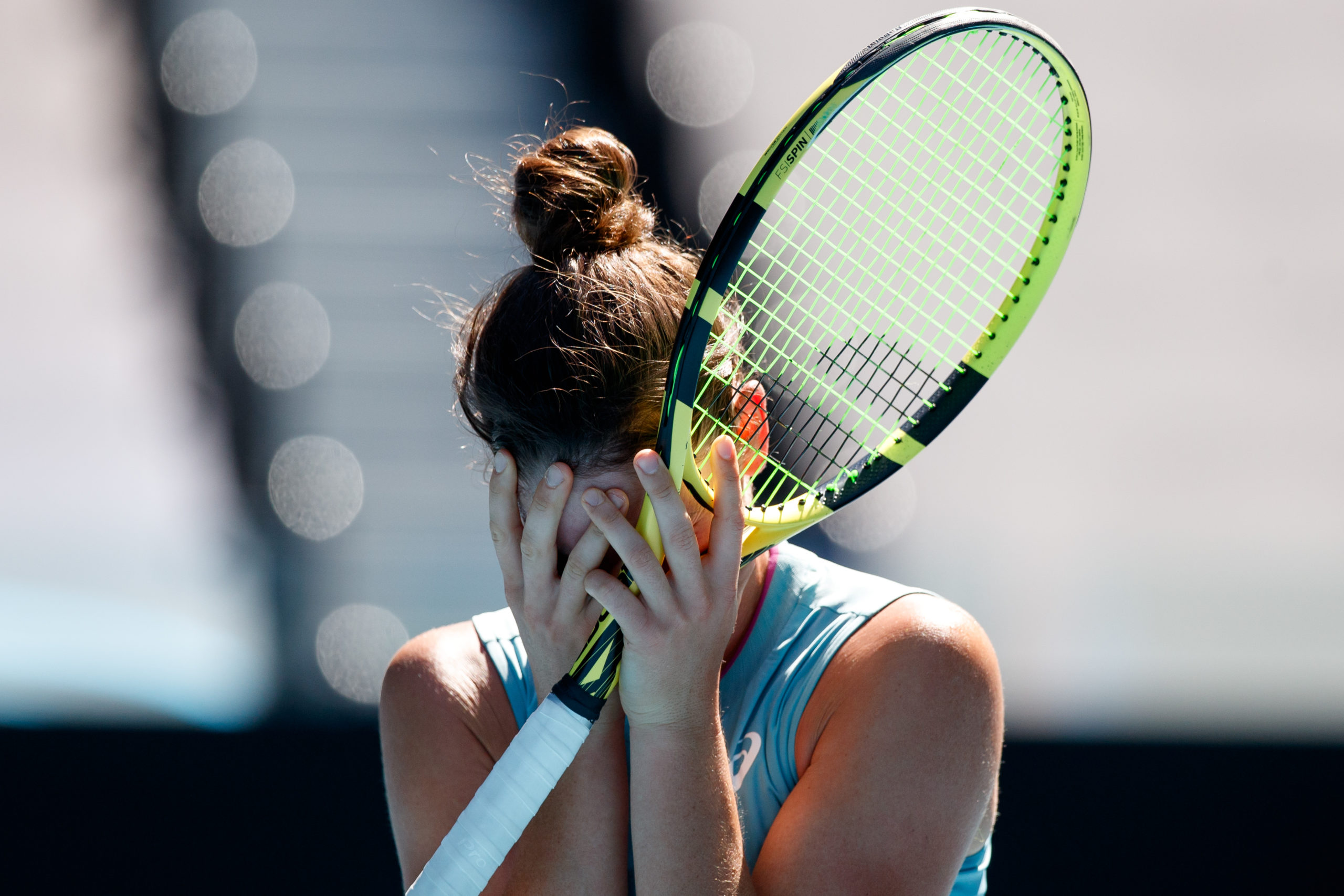 In hot conditions, Brady fought back, levelling the tie in the second with some powerful tennis. She jumped out to a 3-0 lead, briefly lost it and slammed her racket to the ground in frustration, before refocussing.