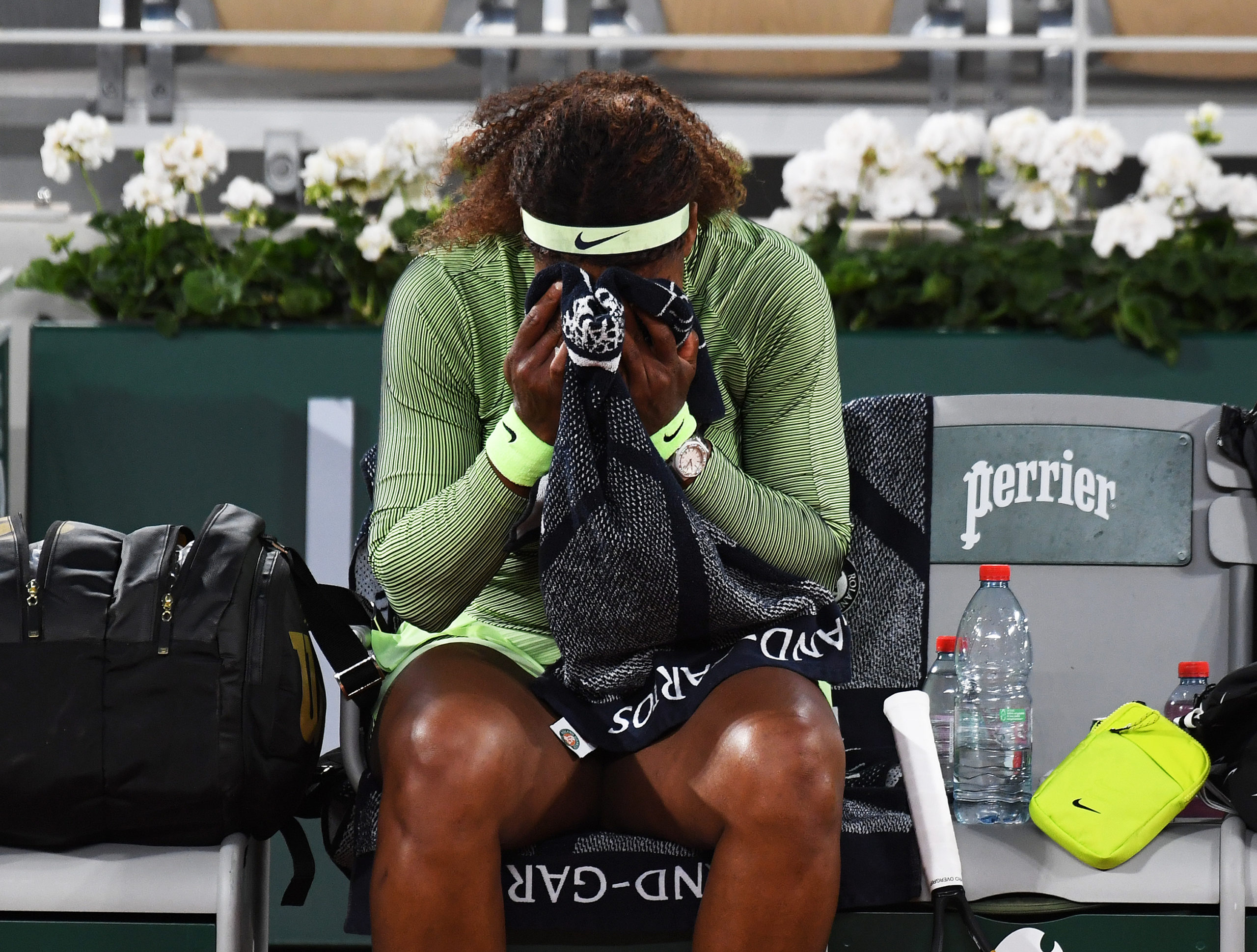 Paris, Roland Garros, French Open Day 2 31/05/2021 Serena Williams (USA) struggles to victory in first round match Roger Parker International Sports Fotos Ltd