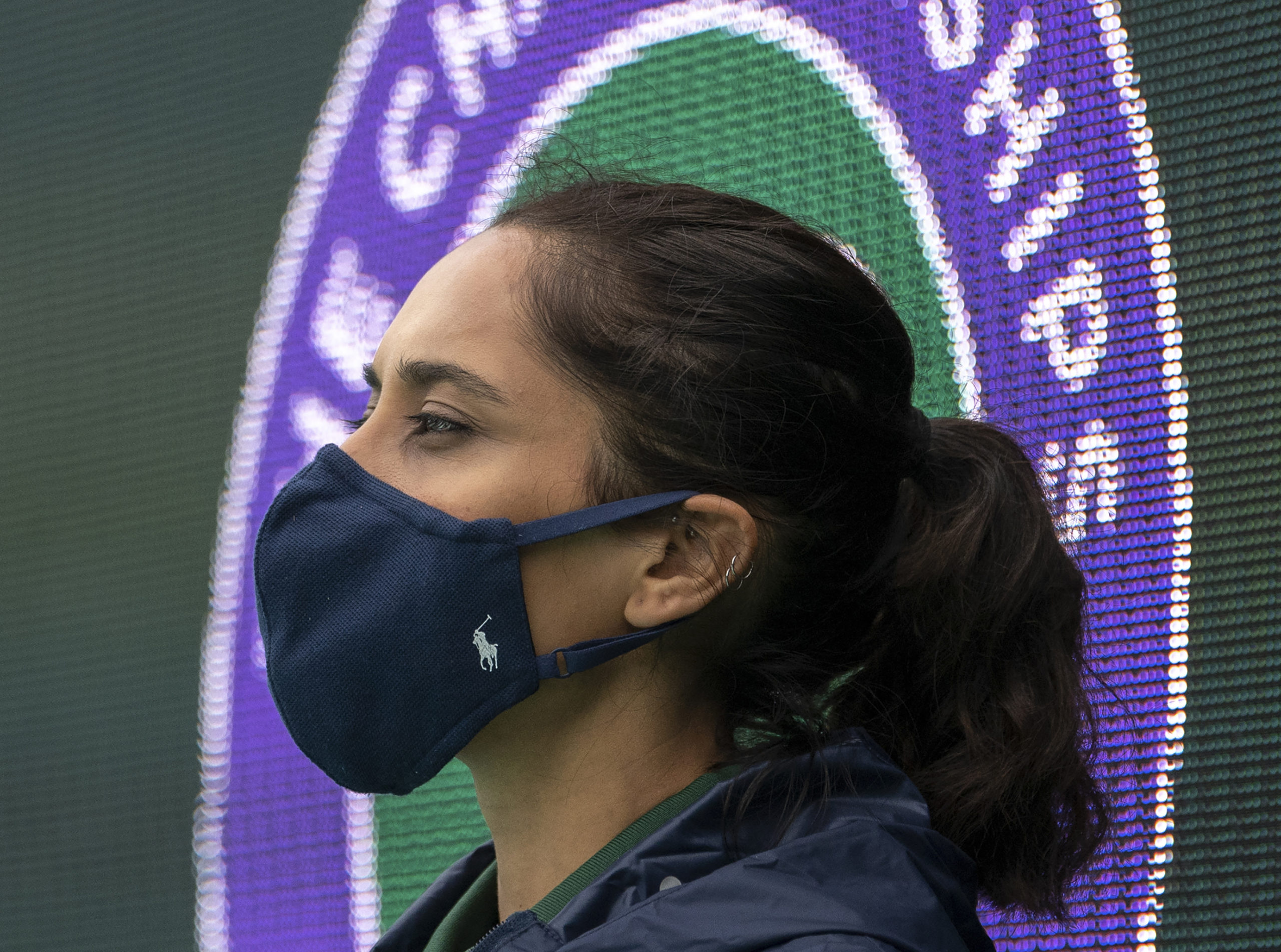 A Ground staff member on Court 9 ahead of the first dayís play at The Championships 2021. Held at The All England Lawn Tennis Club, Wimbledon. Day 1 Monday 28/06/2021. Credit: AELTC/Ben Solomon