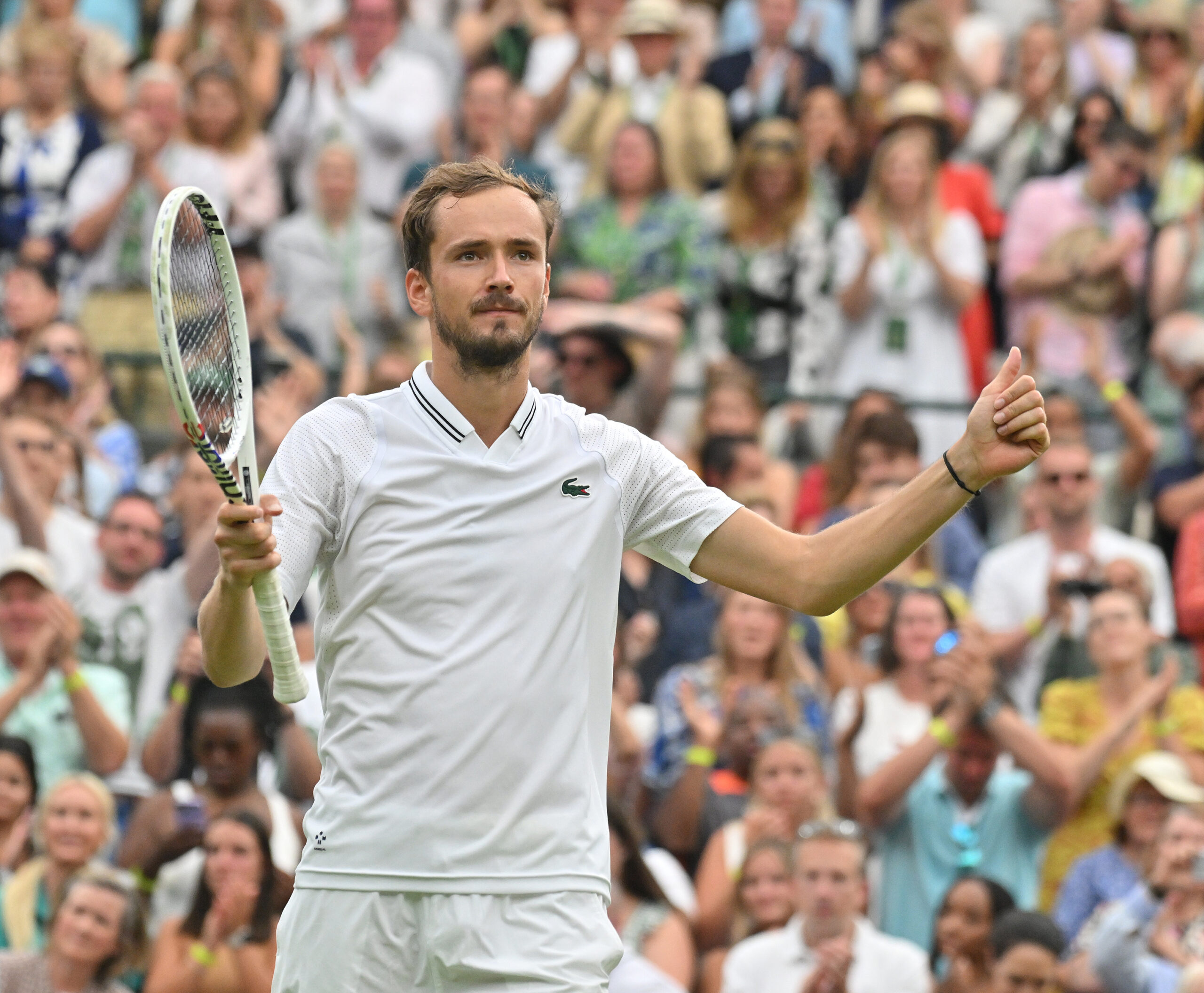 London Wimbledon Championships Day 10 12/07/2023 Daniil Medvedev (xxx) wins quarter final match Photo Roger Parker International Sports Fotos Ltd