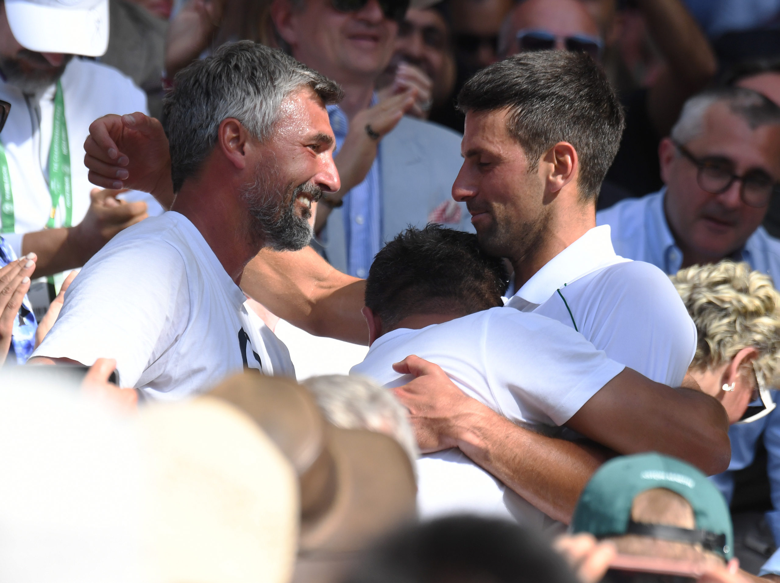 London Wimbledon Championships Day 10/07/2022 Novak Djokovic (SRB) celebrates with coach Goran Ivanisevic after he wins Mens Singles Final beating Nick Kyrgios (AUS) in four sets Photo Roger Parker International Sports Fotos Ltd