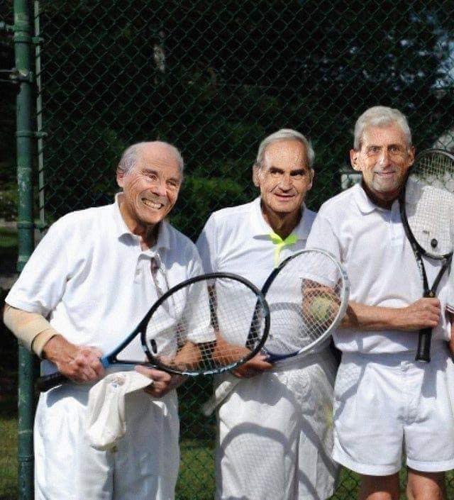 After an exchange of volleys he was lobbed and unable to chase back quickly enough in his blazer and tie, the pair returned to their proper places.