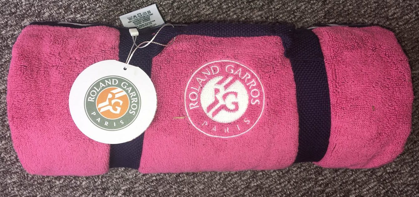Your chance to win a unique 2018 Roland Garros official Ladies Player full size Beach Towel in pink, with an Eiffel Tower logo on the reverse.