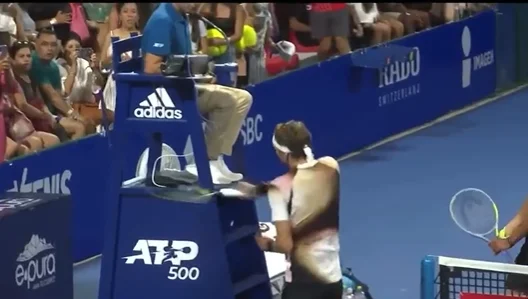 The German was earlier involved in an argument with the umpire over a line call that went against him and Melo.